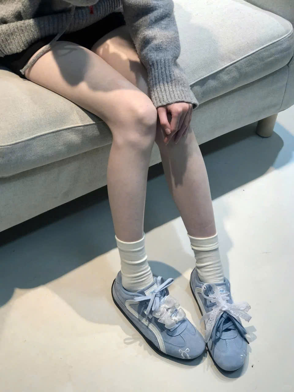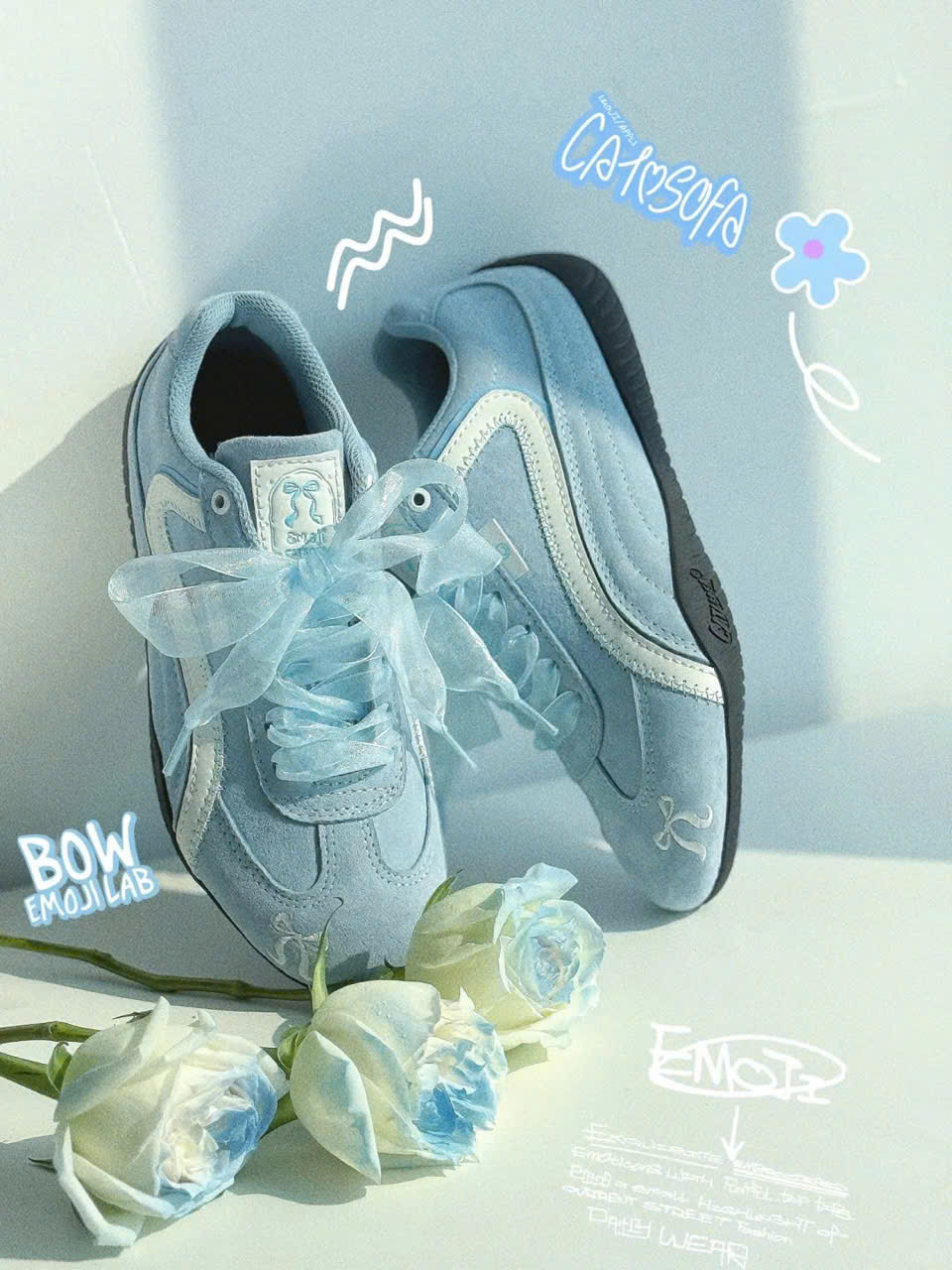 Giày emoji nơ xanh